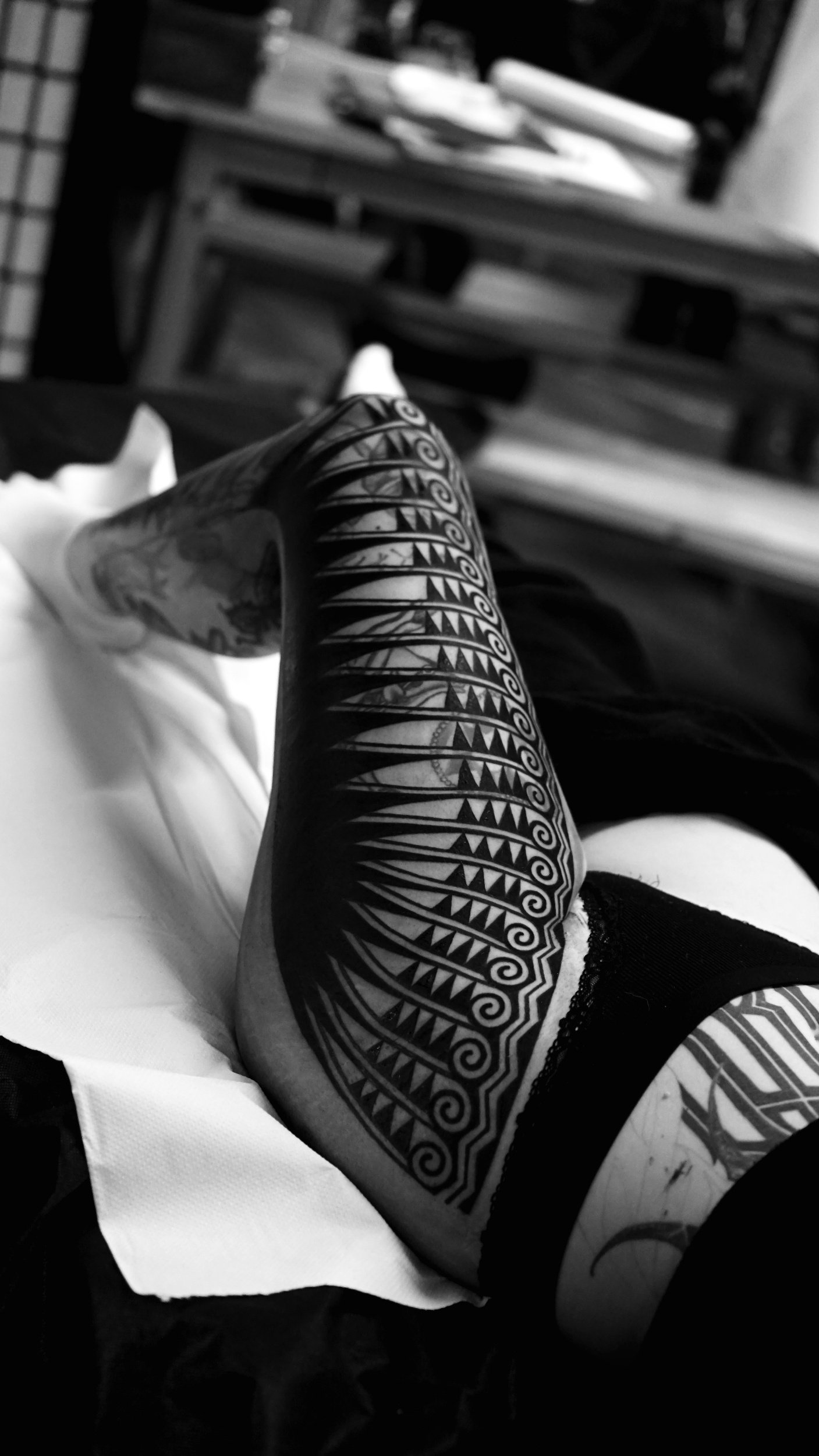 Maeve’s leg was also a great piece to work on…working with a pre-exisiting calf/shin piece from TomasTomas, connecting all the way up to her back piece…